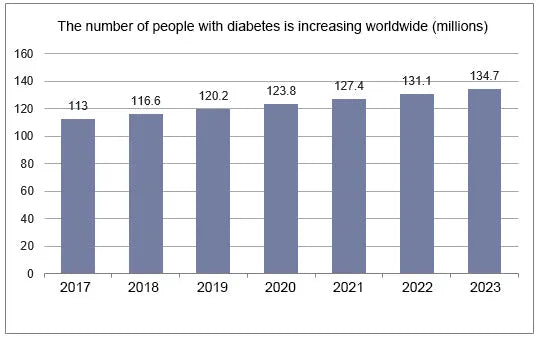 📈 La diabetes crece a un ritmo del 3% anual y sigue en expansión.